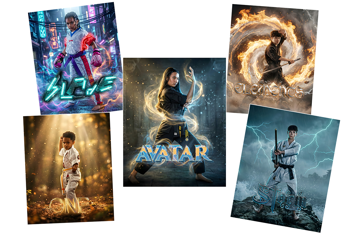 Your family session includes 7 Warrior Designs + 1 Dojo Exclusive Design. Color options available for Spirit, Matrix, Hero, and Aura.